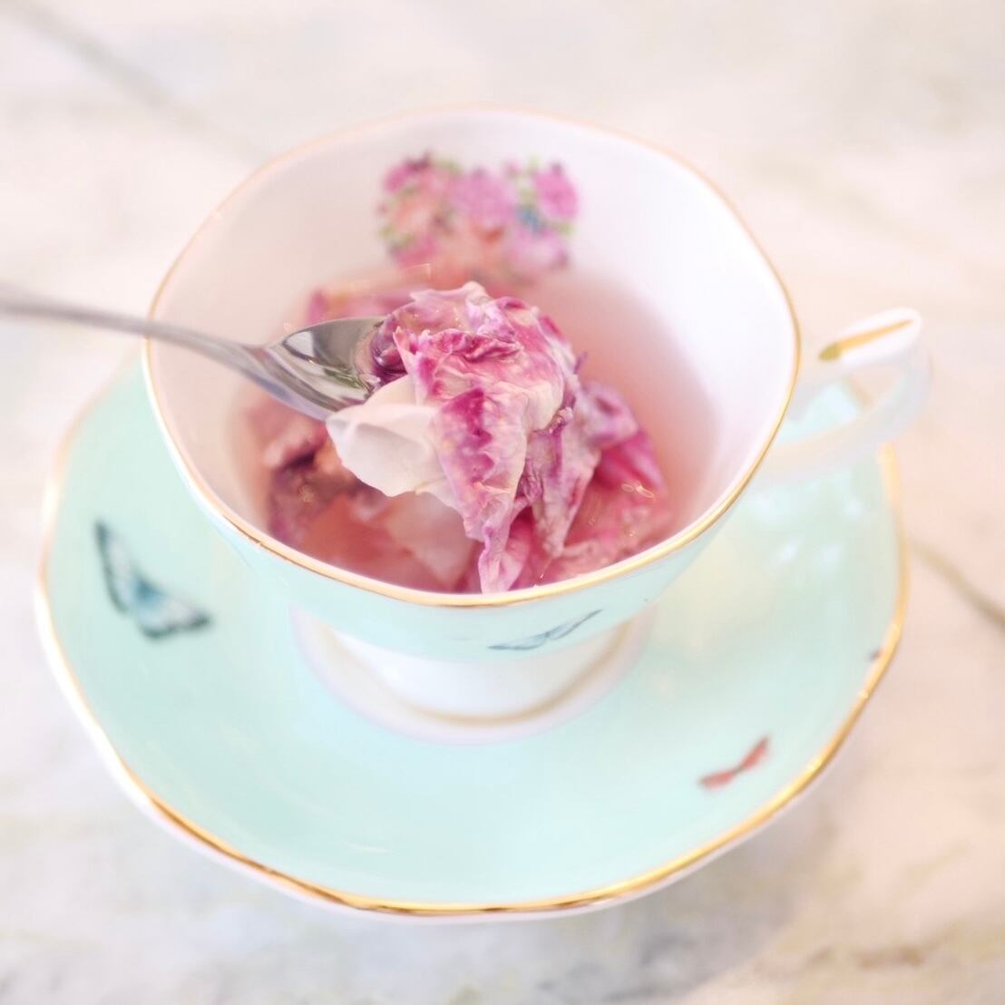 ティーカップにそのまま適量の花びらを入れ、お湯を注いでも◎