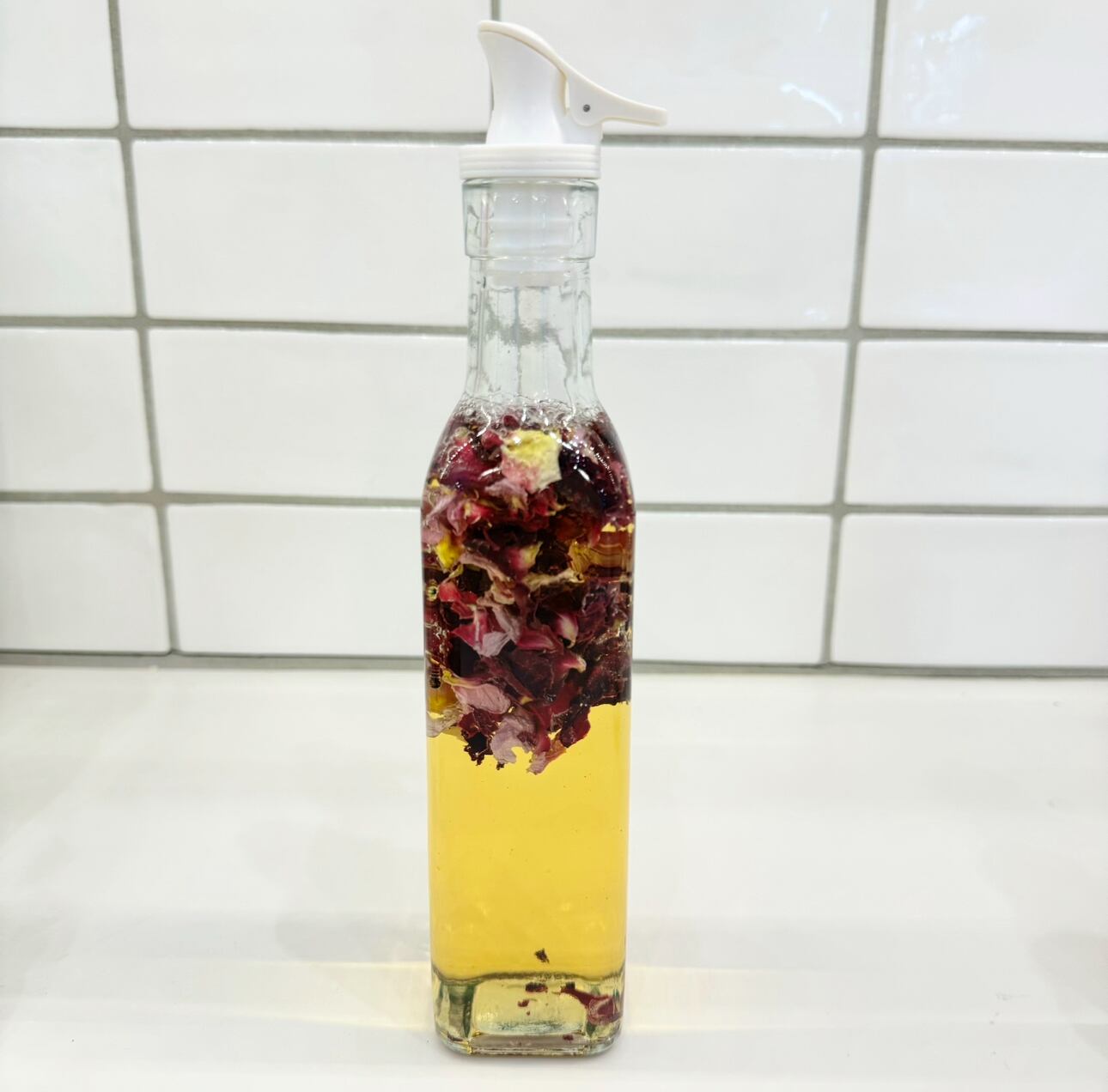 蓋をして数分蒸らし、薔薇の香りを移します。