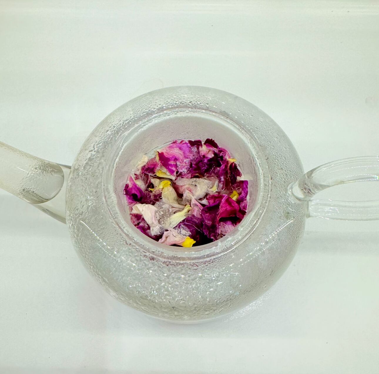 適量の花びらをティーポットに入れ、お湯を注ぎます。